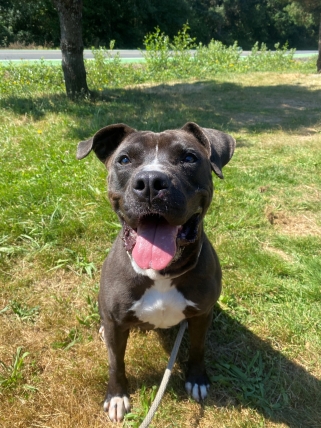 Bambi is a 3 year old fun-sized, affectionate pup with a beautiful black coat, white chest, and little white toes. Bambi is a Grade A snuggler who will wiggle with delight and do a happy feet dance when you pet her.