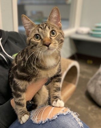 Meet Bruno. This little tabby is 4 months old and loves to play. He will chase a string, chase a toy or chase his tail if he’s playing alone. If you’re looking for a very friendly and playful kitten, come meet Bruno today!