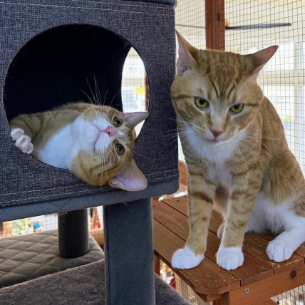 Milo and Jesse are two brothers who are the perfect yin/yang duo. This bonded pair of ginger boys provides the full range of orange cat love. Milo is chatty and outgoing, and Jesse is calm and sweet, preferring to let Milo take the lead while he remains the gentle little brother. Both love head rubs and being around people. Someone is going to hit the jackpot with this sweet pair – let’s help them find their lucky home together!